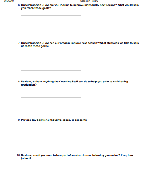 These can differ based on job at the high school level. If you work in the building, there is a convenience to being able to have exit meetings on site. As oppose to coaches that work outside of the building finding an opportunity to getting individuals to schedule time to meet, or creating a virtual exit meeting through online forms or Google Docs.