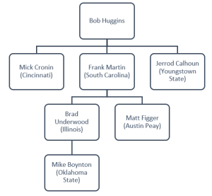 Coaching trees exist from former assistants creating opportunities for themselves as head coaches, later to pay it forward to future staffers of their own (see image above – Bob Huggins coaching tree). Job opportunities come to exist largely because of the success of the program while under mentorship, but there are likely traits from the head of the table that contribute to future head coaching consideration. From my college playing days, there are now 5 teammates of mine that are coaching at either the high school or collegiate level. That seems like quite a bit. Couldn’t speak for them as for their reasoning to get into it and if there was any correlation to our experiences during our play days contributing to getting into coaching. However, my experience was with a program that had tradition to compete for postseason championship opportunity with a locker room of guys that I could appreciate coaching if in a similar position. So, I think my experience playing gave me the inclination that it was something I would want to be a part of from a leadership standpoint moving forward.