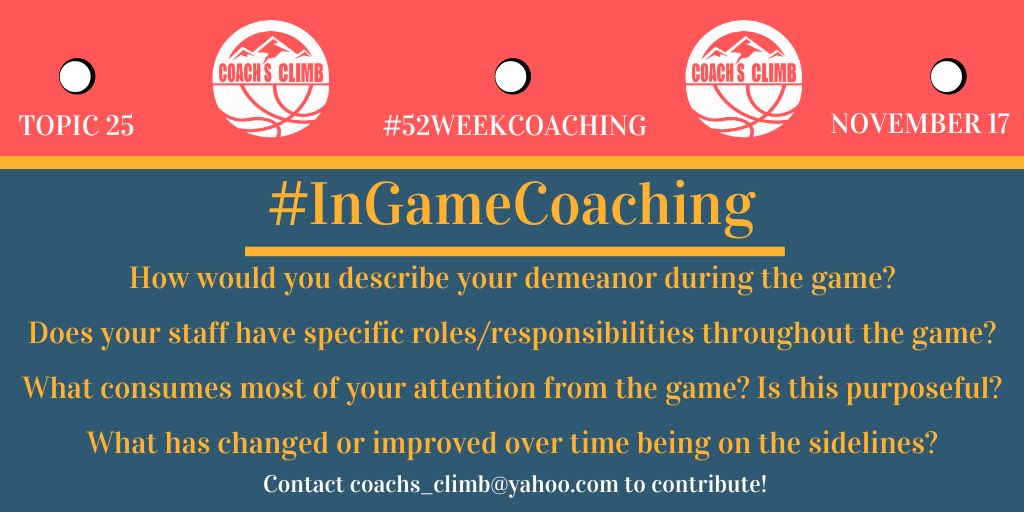I am a high energy, high blood-pressure kind-of coach. So, those brief sedentary stints on the bench gives not only my athletes, but my heart a much needed break. My objective during any game is to keep everyone connected – mentally, competitively, and schematically. This is hopefully accomplished by being engaged in the game with as little interference as possible. But more important than anything, I want my guys to know I’m here to compete with them. This is #InGameCoaching, so let’s go get it!