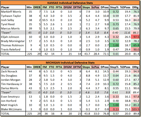 There are no statistics readily available in a box score to evaluate individual defensive performance as there are for offensive output. Sure, we can gauge total points relative to matchup assignments, but as coaches, we all have an understanding for the flow of a game that can cause offensive numbers to be inflated. Dean Oliver looked to fill that void by initiating the Project Defensive Score Sheet as an attempt to measure individual defensive performance based on actual 1-on-1 matchups throughout the course of a game.