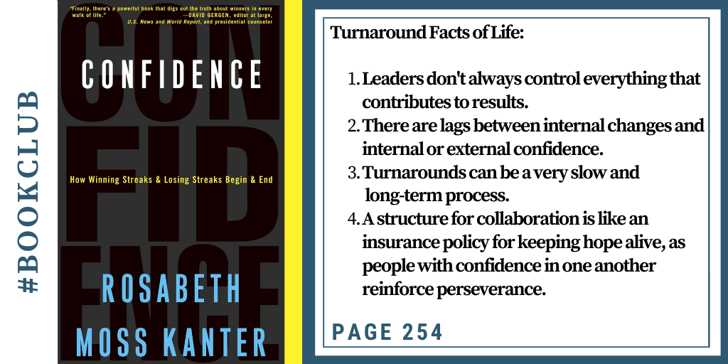 Previously discussed from Losing Streaks were concepts of doom loops or feeling stuck in the middle when perceived as failing. Part II of the book pertains to getting out of a downward spiral through the foundational Cornerstones of Confidence. Subsequently, each chapter incorporates a case-study approach to illuminate the application of each stone. What was really interesting to read about was the dynamics of change and time in relation to the cultivation of confidence. Regardless of the industry; teammates or CEOs likely already understood the challenges that the organization already faced to improve. It was the anticipated commitment that was the burden. Or it was the self-motivation to embrace the change necessary to turn it around. All of these decisions were an accumulation of discrete actions generating confidence in real change, or increase in value. This can all take a toll mentally because of just a momentary lapse and start to fall back into the pitfalls of poor decision-making. What we come to find out is the momentary lapses are the revelations of real confidence. Resolve is the litmus test.