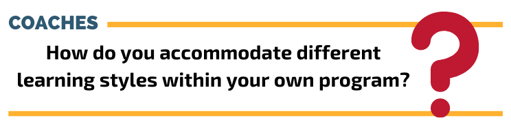 Our effectiveness to teach depends on our ability to identify the different learning styles amongst the team. This is likely heard from conversations that may circulate with other coaches discussing whole-part-whole methodology or the piecemeal (“Part-Practice”) approach. Other debates exist related to doing drills on-air compared to teaching everything with the presence of defense attempting to simulate the unpredictable nature of an opponent. However the approach to teaching, the foundation lies with what resonates most with the students. The four prominent learning styles referenced by the author: