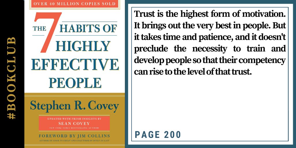 Trust is the highest form of human motivation. It brings out the very best in people. But it takes time and patience, and it doesn’t preclude the necessity to train and develop people so that their competency can rise to the level of that trust.