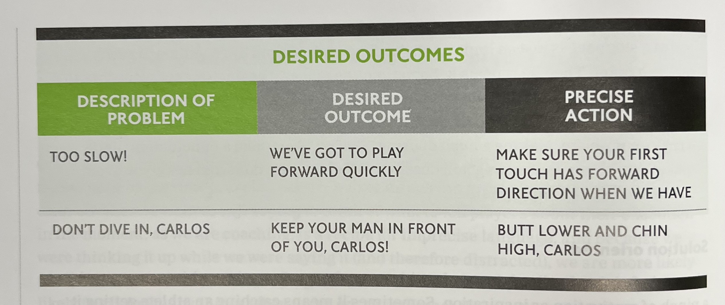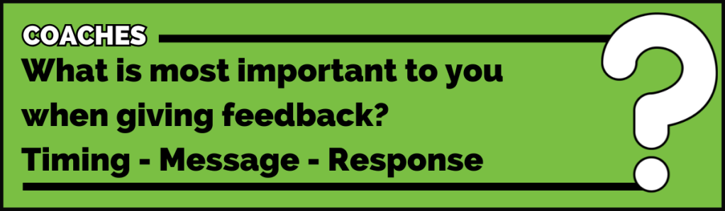 For the most part, practices offer an opportunity for coaches to engage in more 2-way conversations where an instruction can be followed by a check for understanding or clarification. During games, the message tends to be unilaterally coded into abbreviated reminders that hopefully resonate most with the players and team. This is referenced as a form of fast feedback in the book.